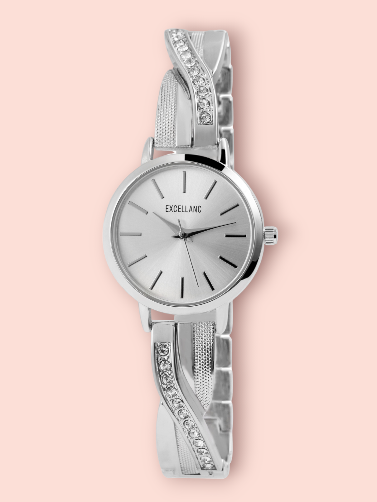 Het analoge 3-wijzer dames polshorloge van Excellanc heeft een hoogwaardig en nauwkeurig Miyota quartz uurwerk. De metalen armband heeft een aanzetbreedte van 12 mm en kan met een clipsluiting geopend en gesloten worden. De totale lengte van de klok is 19 cm. De metalen kast met mineraal glas heeft een diameter van 30 mm en een kasthoogte van 9 mm. De achterkant van de kast is gemaakt van roestvrij staal. De minimalistische wijzerplaat scoort met gemakkelijke leesbaarheid, het is eenvoudig en duidelijk ontworpen. De wijzers en indexen passen zich qua kleur aan het totaalbeeld van het horloge aan en ronden zo vakkundig de look af. Een prachtige klassieker die perfect te combineren is met elke gelegenheid. Een andere blikvanger zijn de simili-stenen, die vakkundig accenten zetten op de eerste contactelementen.