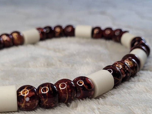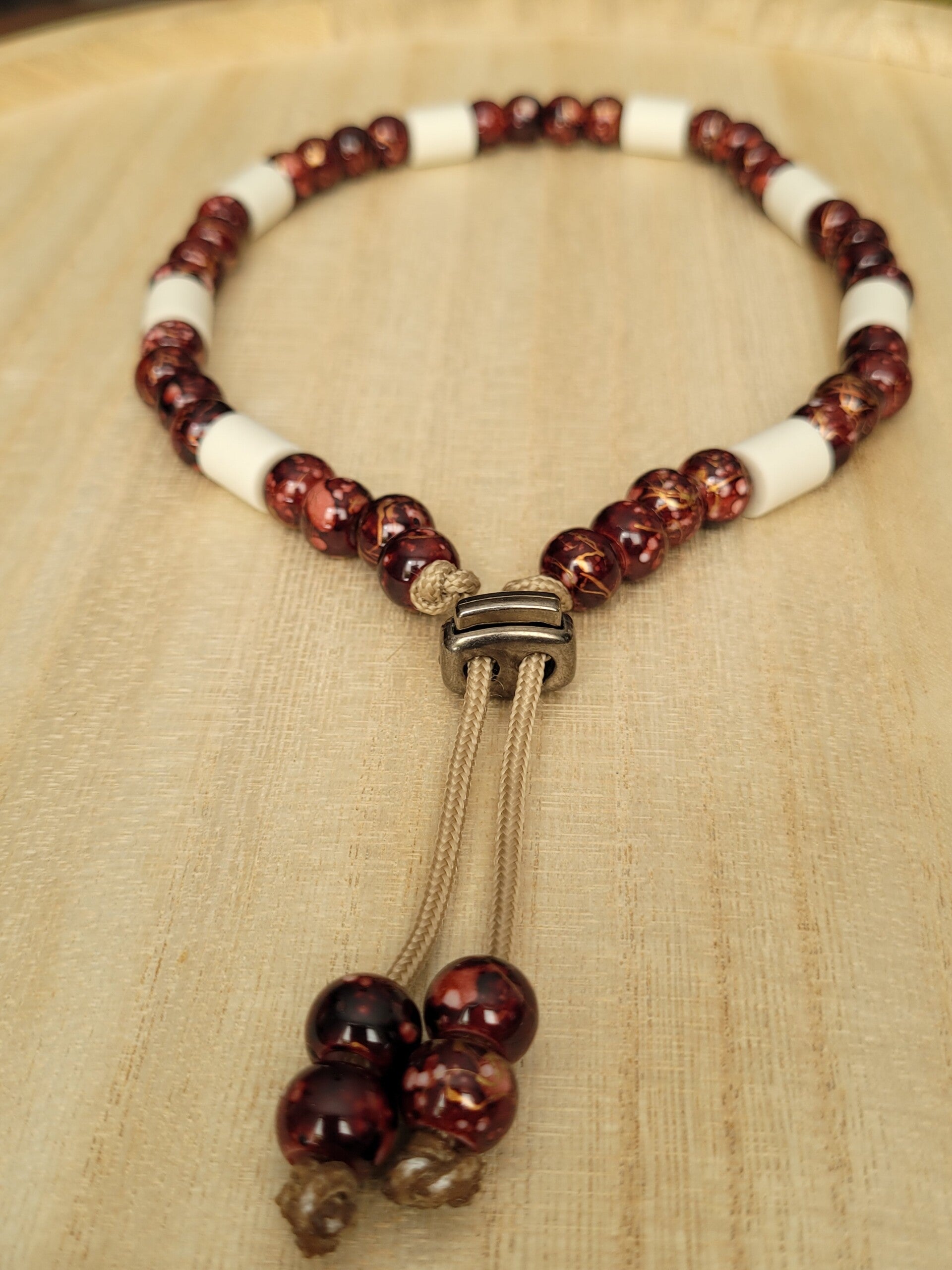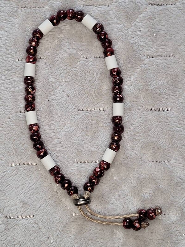 Deze tekenband emx is uitgevoerd met kralen in donkerrood.