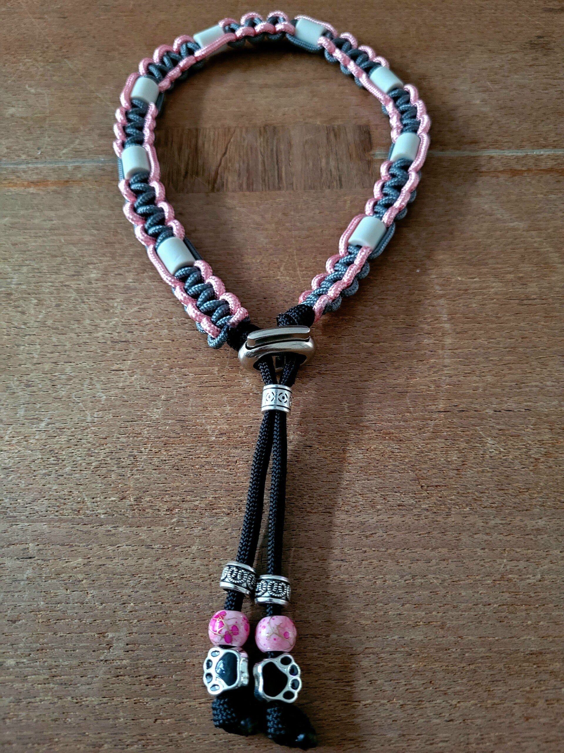 Anti Vlooien- en Tekenband EM-X Paracord Grijs Roze