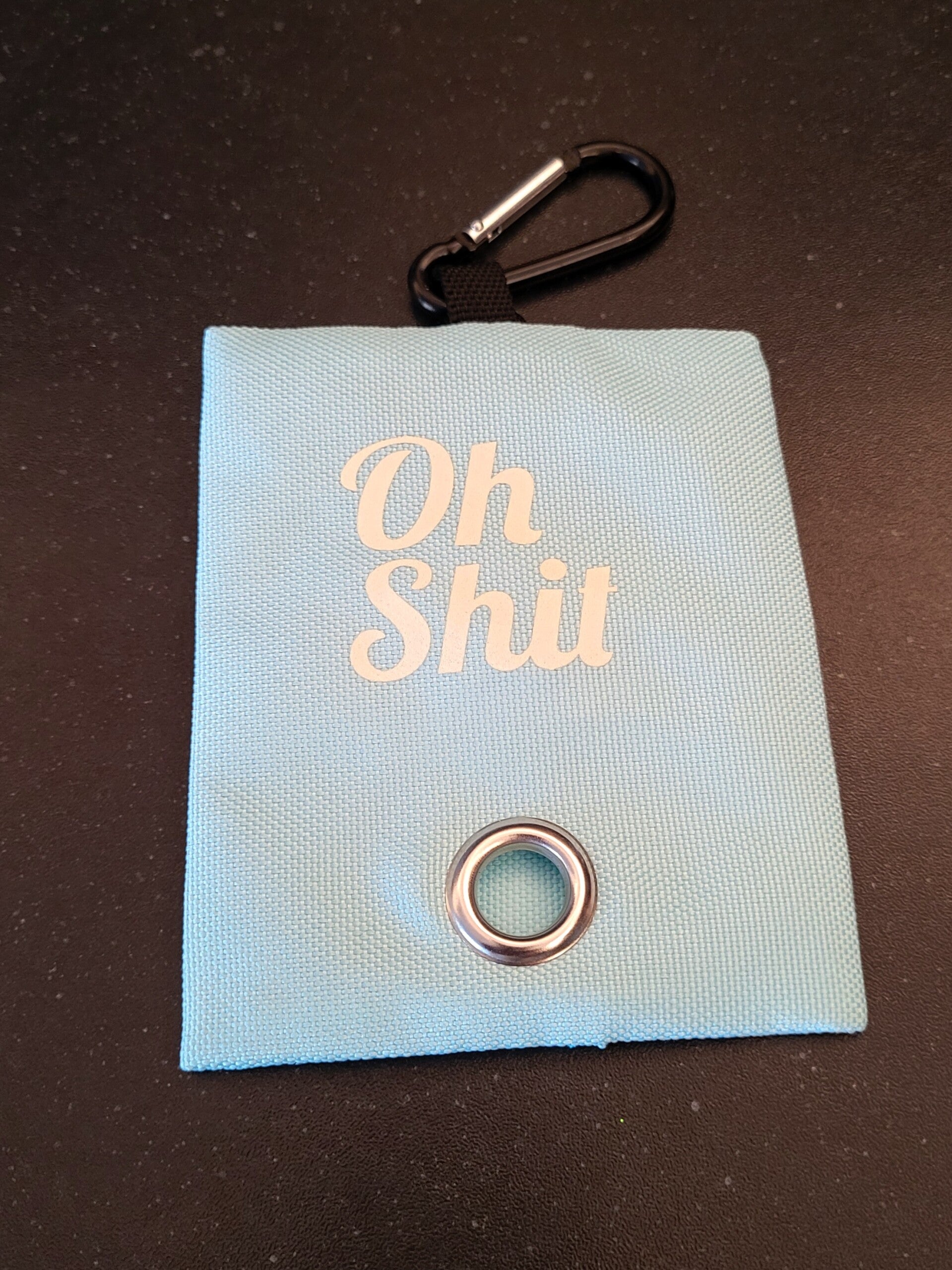 Deze poepzakhouder met tekst 'Oh Shit' wordt geleverd met 20 zakjes (1 rolletje).