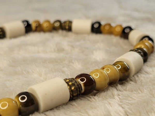 Deze tekenband emx is uitgevoerd met kralen in bruintinten.