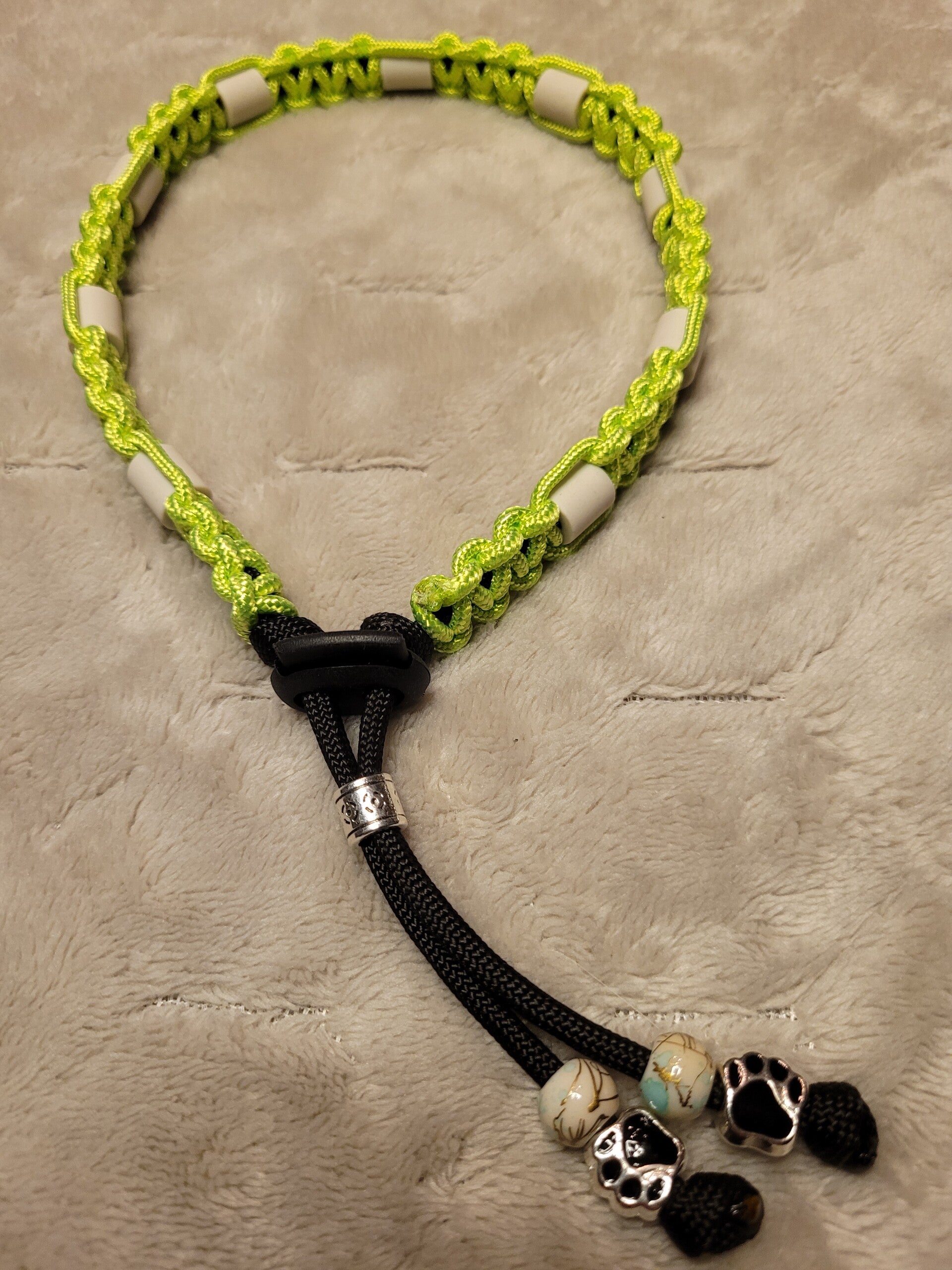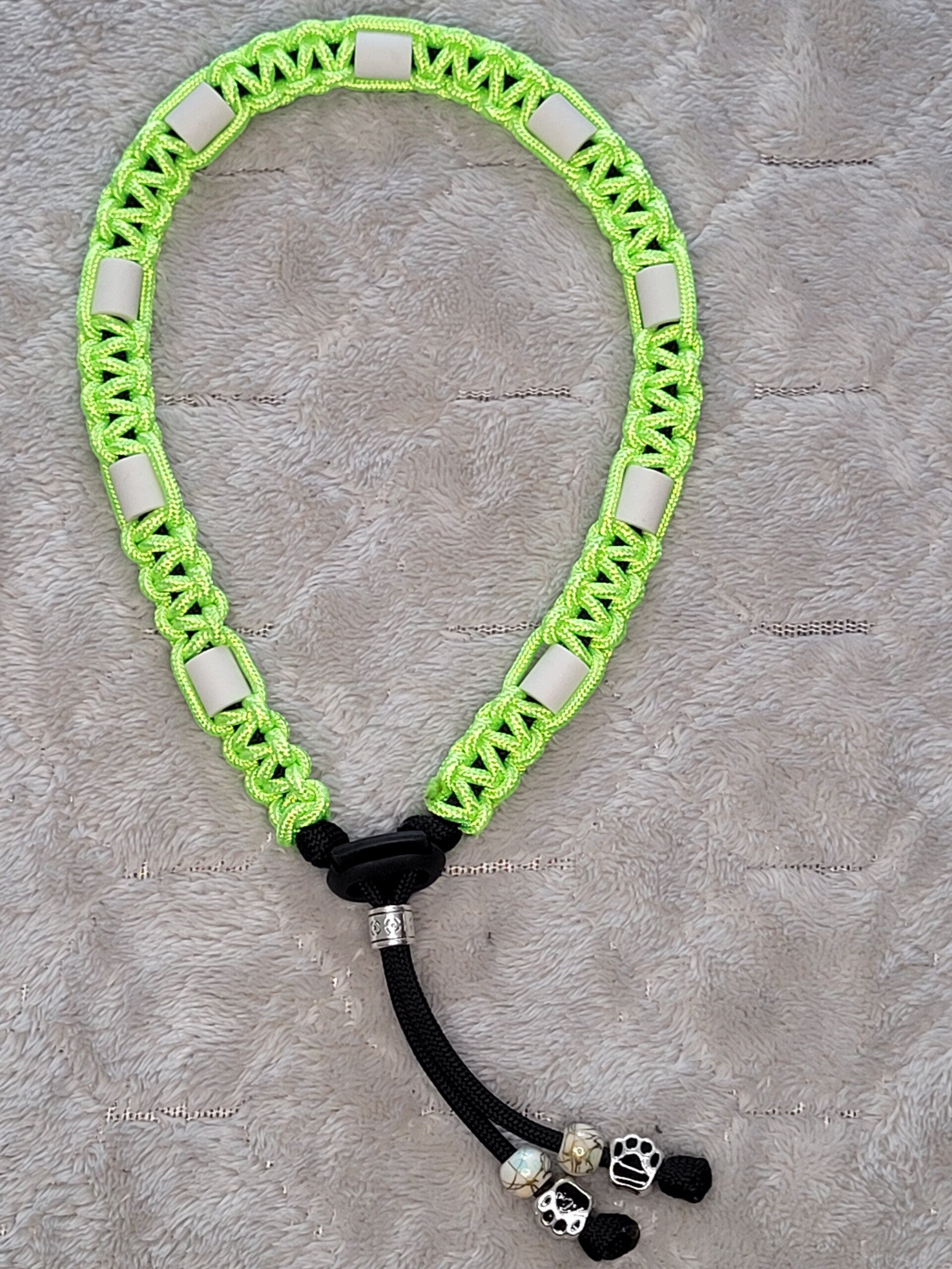 Standaard is deze halsband voor zien van hondenpoot kralen aan het uiteinde en decoratieve kralen en spacers.