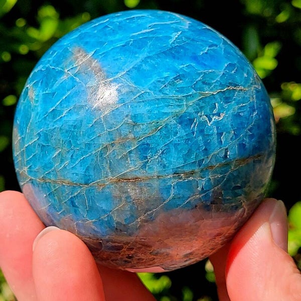 Een prachtige helder blauwe apatiet bol.