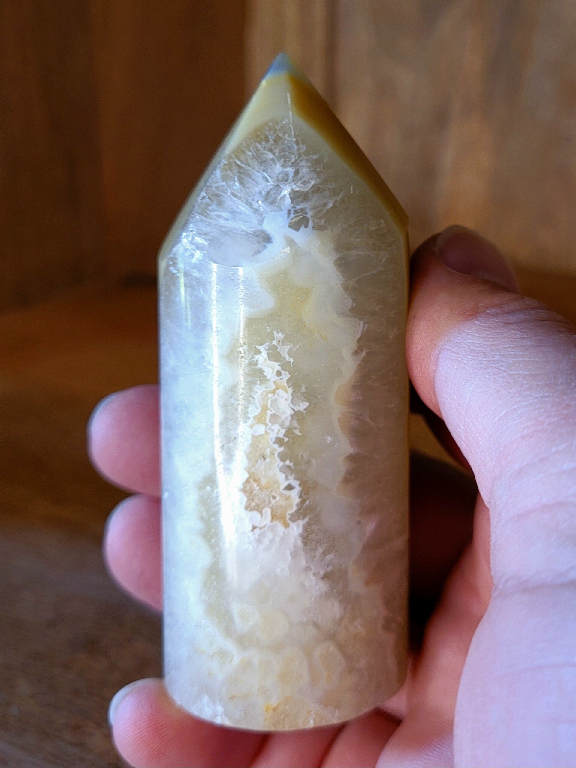 De meeste edelsteen torens zijn hoekig geslepen. Deze toren is rond gepolijst en in de punt hoekig.