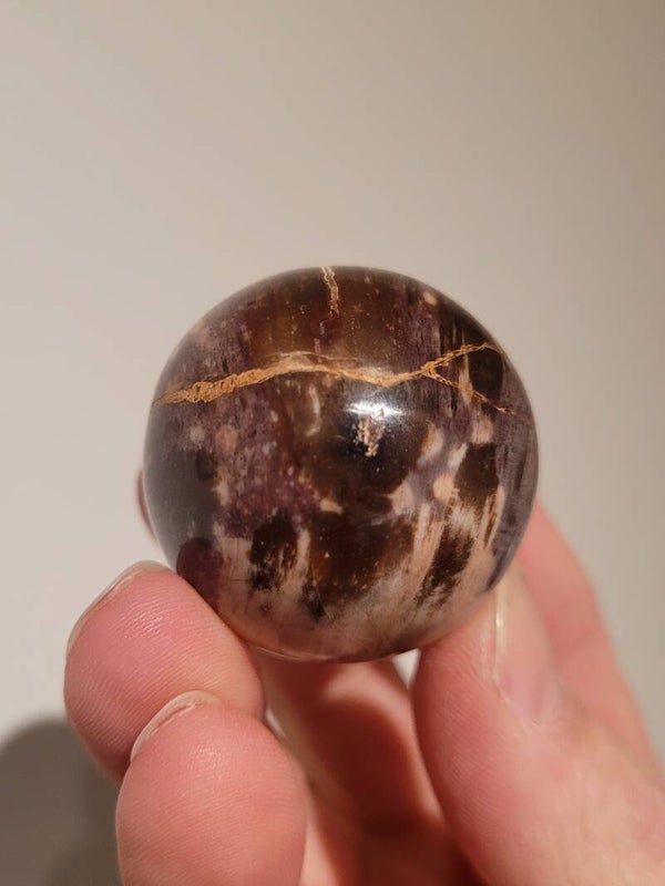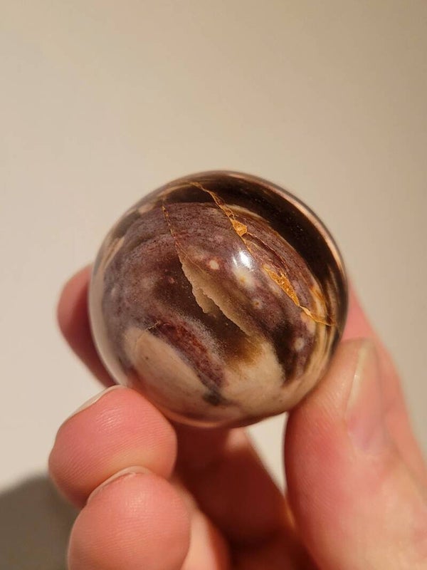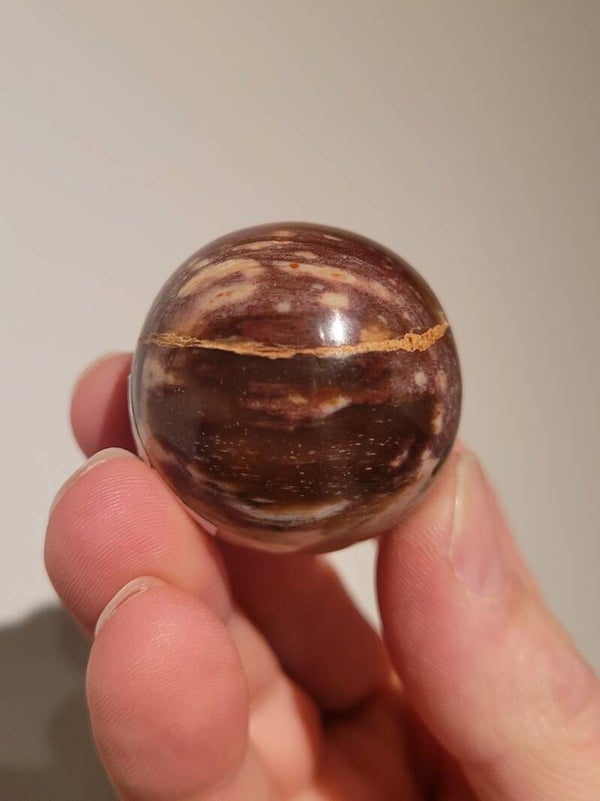 Versteend hout bol van 39mm doorsnee.