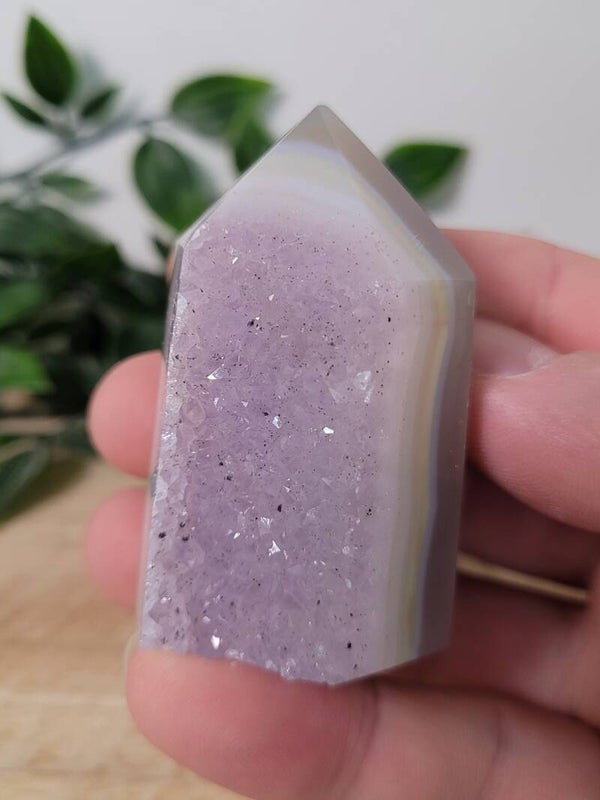 De Druzy Agaat Toren is een prachtige edelsteen die direct opvalt door zijn unieke combinatie van kleuren, natuurlijke banding en sprankelende druze kristallen. Deze bijzondere agaat toren is niet alleen een visueel kunstwerk uit de natuur, maar wordt ook gewaardeerd om zijn rustgevende en aardende werking. Perfect als decoratief object, spirituele tool of als krachtige energieversterker in huis.