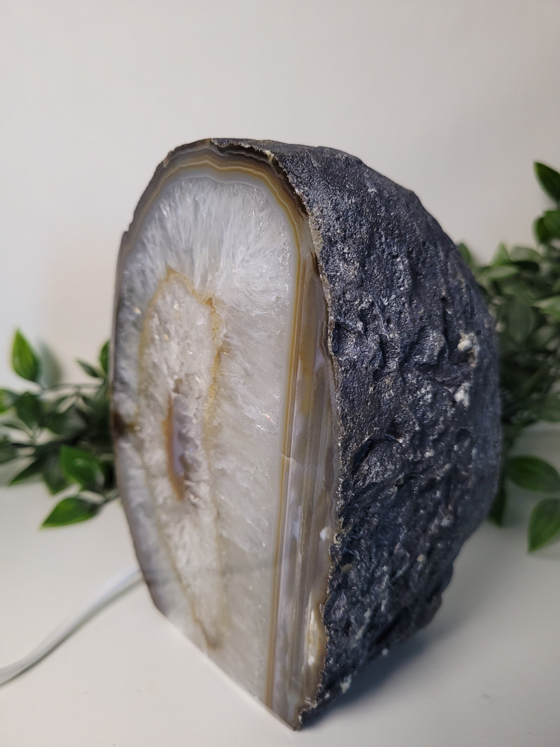 Breng direct sfeer in huis met deze prachtige Agaatlamp – een echte eyecatcher met een warme, natuurlijke uitstraling. Zodra je de lamp aanzet, komt de edelsteen tot leven en verspreidt hij een zacht, doorschijnend licht dat zorgt voor een gezellige en ontspannen ambiance.