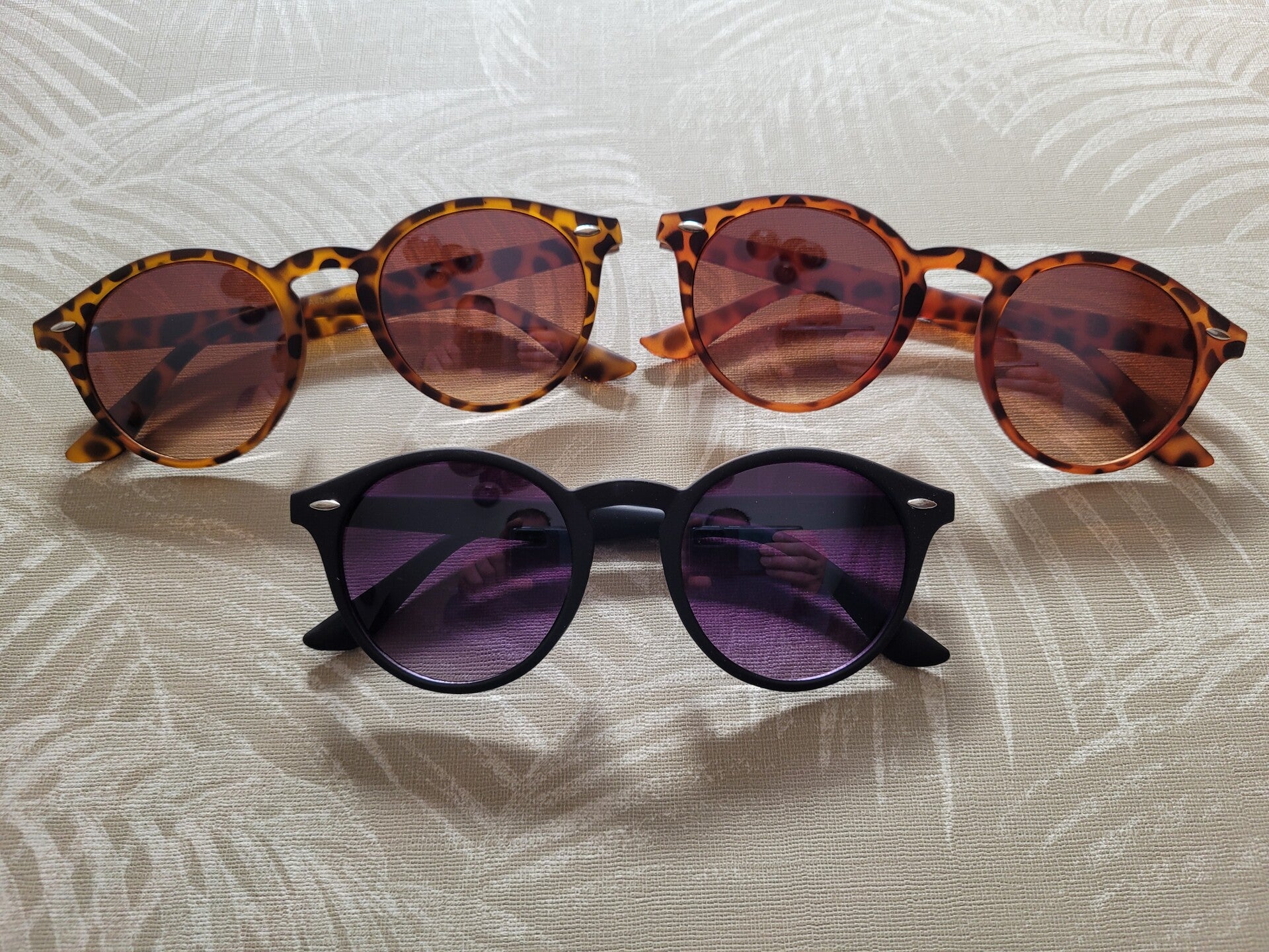 Dameszonnebril met mat bruin gevlekt montuur en decoratieve studs. Glazen in de kleur brown.